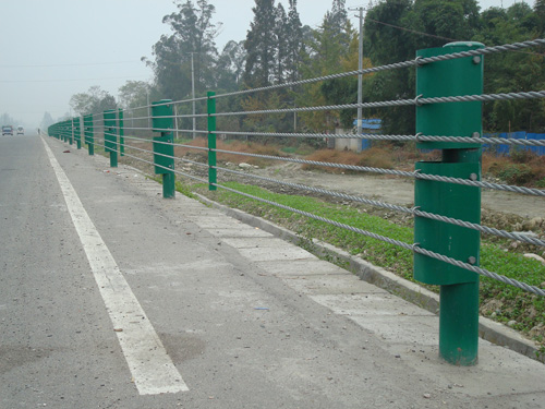 • 纜索護(hù)欄采用了鋼絲繩的表面防腐處理,采用單絲進(jìn)行熱浸鍍鋅的辦法,符合《鍍鋅鋼絞線》(GB1200-88)的規(guī)定。